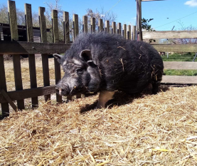 Max' Geschichte: Lange Zeit lebten die Brüder Max und Moritz glücklich auf unserem Hof. Beide wurden 2014 in Deutschland geboren. Wir haben sie als Ferkel aus schlechter Haltung zu uns geholt und gaben ihnen ein neues Zuhause. Es gab zuvor keinen geschlossenen Stall und nicht ausreichend Stroh, um sich bei niedrigen Temperaturen zu wärmen. Moritz verstarb im Januar 2021. Max' Patin war Ines Lange, herzlichen Dank!