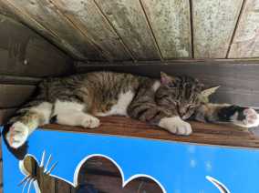 Unser geliebter Maiky, du hast mit deinem sanften und verschmusten Wesen alle menschlichen Katzenhaus-Besucher fasziniert und begeistert :-) Auch deine zugezogenen Artgenossen empfingst du freundlich. Nicht jeder deiner Mitbewohner allerdings wusste dies dauerhaft zu schätzen. Und so wurde dir gerade mit deiner spürbar nachlassenden körperlichen Stärke immer häufiger dein Rückzugsplätzchen streitig gemacht ... Ach Maiky, wir sind so dankbar für die wundervolle Zeit mit dir!!! Und weißt du, wenn wir im Katzenhaus beim Saubermachen sind, wähnen wir dich manchmal immer noch oben auf dem Fenster-Turm im Haus oder auf der blauen Mäusekiste unterm Dach des Vorbaus (siehe Bild) ;-) ... Ruhe dich nun aus, lieber Schatz, ohne Schmerzen und in Frieden! Wir denken sehr, sehr gern dich! ❤️